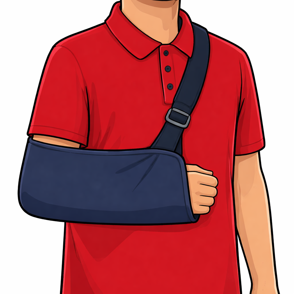 A sling is a simple medical device used to support and immobilize the arm after a clavicle fracture. It consists of a cloth or padded strap that goes around the neck and holds the forearm across the chest, helping reduce movement at the shoulder and collarbone so the bone can heal.
