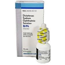 Diclofenac 0.1% is a nonsteroidal anti-inflammatory drug (NSAID) eye drop used for pain relief in various ocular conditions, including corneal abrasions. It works by inhibiting prostaglandin synthesis, reducing inflammation and discomfort.